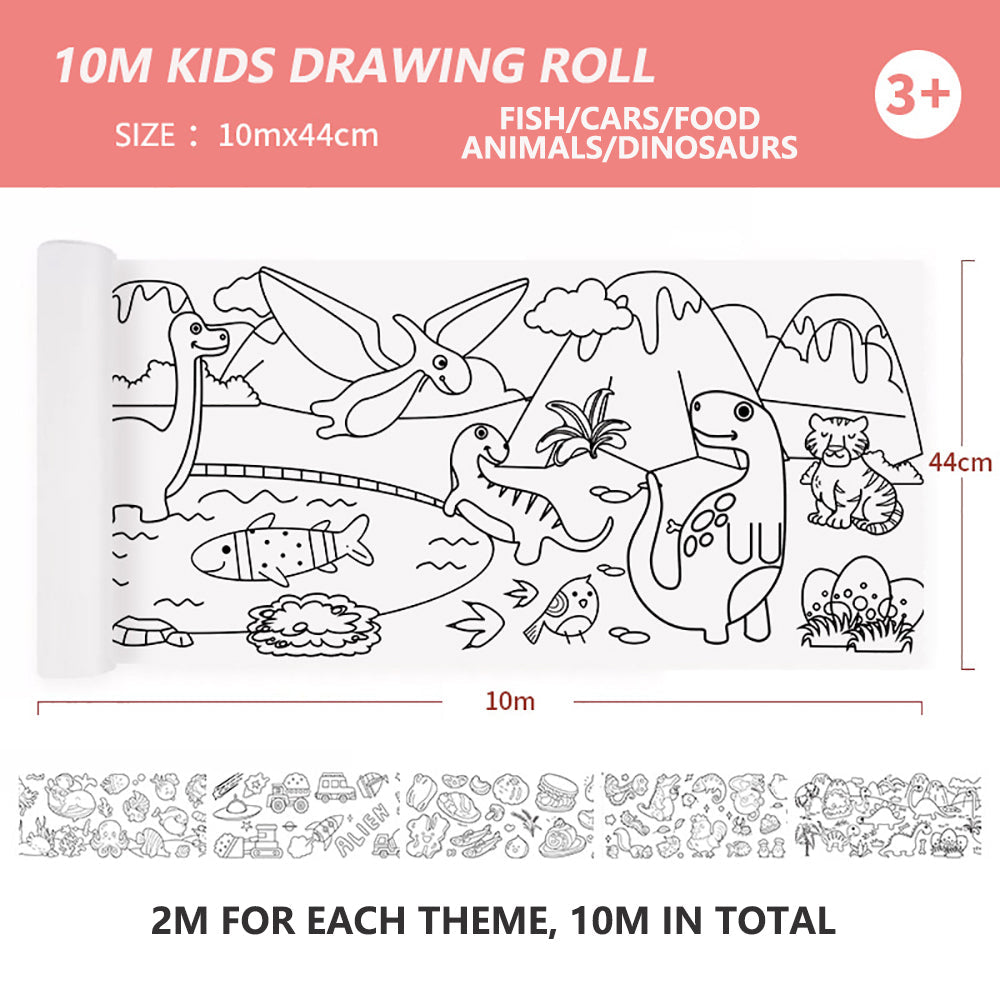 44cm*10m Kids Drawing Roll Color Filling Paper Graffiti Scroll Coloring Paper Toy(Style 02:5 themes)